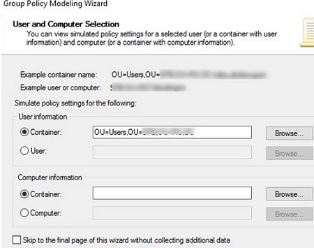 Then follow the questions of the GPO Modeling Wizard. As a result, you will receive a report (check the Details tab), which shows which policies are applied to the AD object and which are not. If a policy is applied or rejected due to a GPO filter, this will be visible in the report.