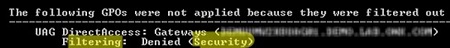 The command will return a list of Applied Group Policy Objects and GPOs that did not apply. The list of filtered GPOs may contain the following items: