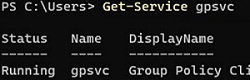 The Group Policy Client (gpsvc) service must be running on Windows in order to process GPOs. Check that the service is started using PowerShell: