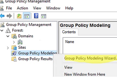 Go to the Group Policy Modeling section and run the Group Policy Modeling Wizard.