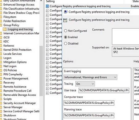 To troubleshoot the Group Policy Preferences, you can use a special logging mode – Group Policy Preferences Tracing.