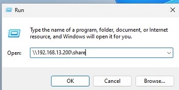 Press Win+R and type the UNC path to a shared folder you want to open (you can use the following formats: \\192.168.31.10\Docs or \\FS01\Docs).