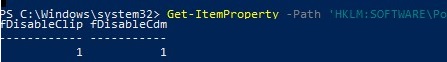 Get-ItemProperty -Path 'HKLM:SOFTWARE\Policies\Microsoft\Windows NT\Terminal Services' | Select fDisableClip,fDisableCdm