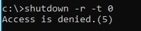 If the user does not have permissions to restart/shutdown the operating system, then an error will appear when running the following command: