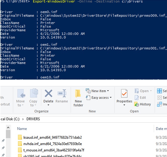 On Windows 10 and Windows Server 2019/2016, you can use the Export-WindowsDriver PowerShell cmdlet to export all third-party (non-Microsoft) drivers installed on the device directly from the Driver Store. This cmdlet allows you to greatly simplify and speed up the process of reinstalling Window. Previously, to create a backup copy of the drivers installed on the computer, you had to use third-party apps (like DoubleDriver, DriverMax, etc).