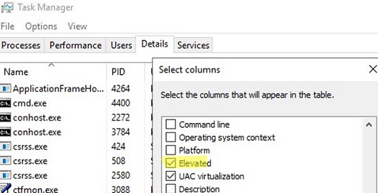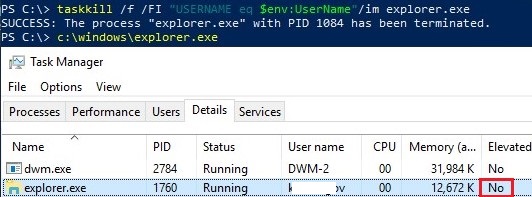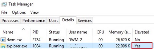 As you can see, explorer.exe is now having attribute Elevated=Yes.
