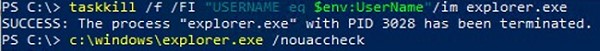 These commands will terminate the explorer.exe process for