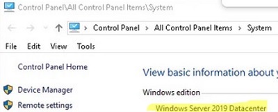 You can use the Control Panel to check which edition of Windows Server is installed on the host. Navigate to Control Panel –> System and Security -> System (or run the command: control /name Microsoft.System).