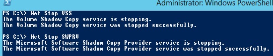 Stop the following services: Volume Shadow Copy and Microsoft Software Shadow Copy Provider.