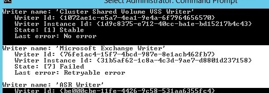 To repair the Exchange writer, try to restart the related service. (The table below shows the list of typical VSS Writers and the related Windows services.) Besides stopping the service, sometimes you will have to kill a hung service process manually.