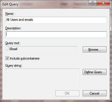 - In the Query root field, you can specify the container (OU) in which you want to search. By default, the search by the query criteria is performed across the entire AD domain. In our example, we’ll narrow the search scope by selecting Brasil container;