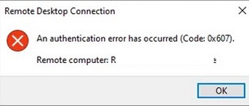 An authentication error has occured (Code: 0x607)