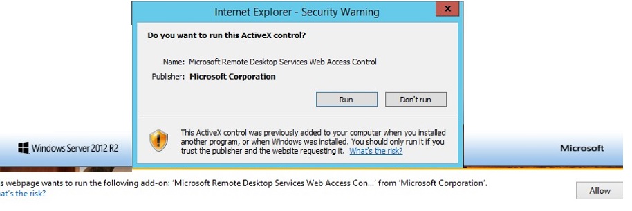 To use Web SSO on RD Web Access, please note that it is recommended to use Internet Explorer with enabled Active X component named Microsoft Remote Desktop Services Web Access Control (MsRdpClientShell, MsRdpWebAccess.dll).