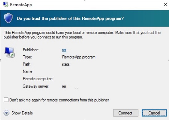 Do you trust the publisher of this RemoteApp program?