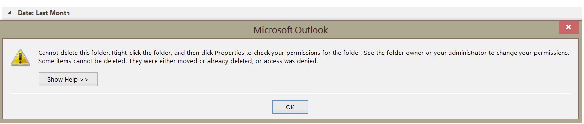 Outlook is synchronizing local changes made to items in this folder. You cannot remove this folder until the synchronization with the server is complete