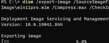 dism /export-image /SourceImageFile:"E:\sources\install.esd" /SourceIndex:6 /DestinationImageFile:C:\Updates\WInImage\win11pro.wim /Compress:max /CheckIntegrity