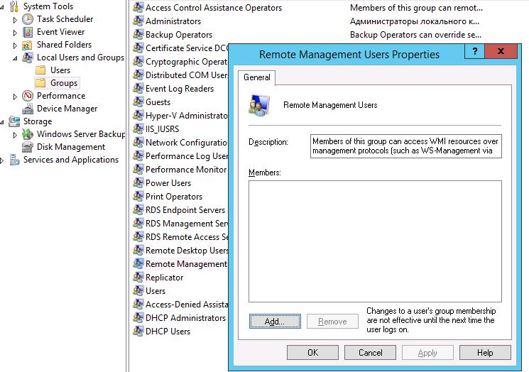 So, to let a user connect to a remote machine through WinRM, it’s enough to be a member of the built-in local group of administrators or Remote Management Users security group (this group is created by default starting from PowerShell 4.0). This group also has access to WMI resources via management protocols (e.g., WS-Management)