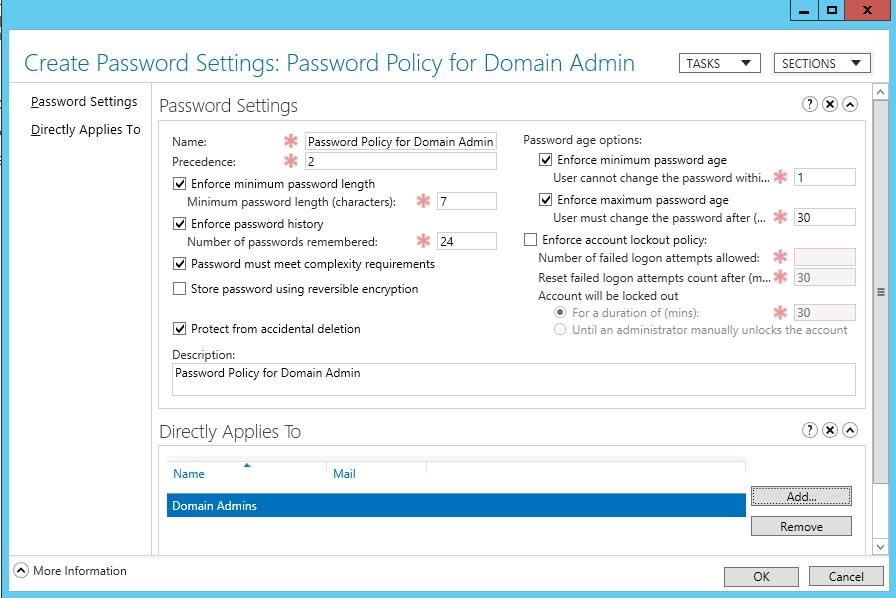 After that, this password policy will be applied to all members of the Domain Admins group.