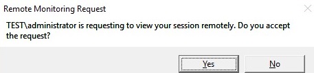 Remote Monitoring Request woshub\administrator is requesting to view your session remotely. Do you accept the request?