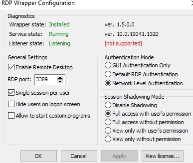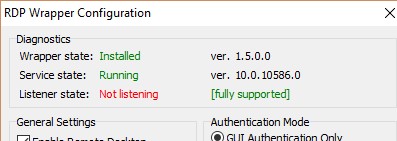 If RDP Wrapper does not work after you install security updates or upgrade the Windows build, check that there is no Listener state: Not listening warning in the RDPWrap Diagnostics section.