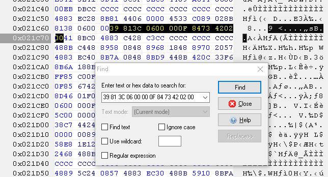 Found: 39 81 3C 06 00 00 0F 84 C3 2A 01 00
