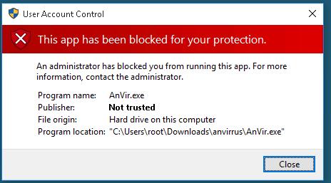 This app has been blocked for your protection An administrator has blocked you from running this app. For more information, contact the administrator.