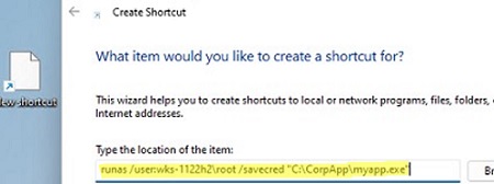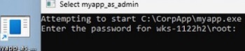 runas /user:wks-123\root /savecred "C:\CorpApp\myapp.exe"