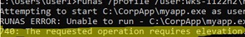 RUNAS ERROR: Unable to run - C:\CorpApp\myapp.exe 740: The requested operation requires elevation.