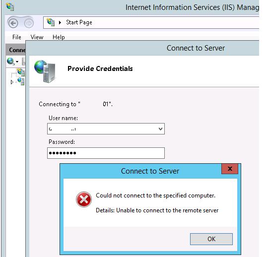 A web-server Internet Information Service in Windows 2016 / 2012 / R2, like previous IIS versions, can be managed remotely. In fact, it is convenient enough to manage multiple IIS servers from a single console, and it is almost the only way to manage a web server running in the Core / Nano mode. However, by default the remote IIS management is disabled, and if you try to add a remote server with the running IIS to the IIS Management Console (Connect to a Server menu) on another server, the following error message appears: