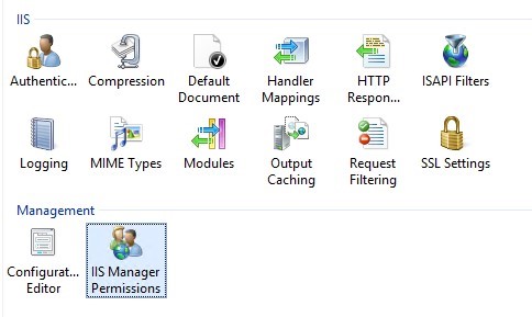 By default, only users with administrator privileges have the permission to remotely manage the IIS server. In order to grant the permission to IIS remote management for standard users, it is necessary to grant the corresponding permissions at the level of each IIS website. Select a site and find the IIS Manager Permissions option.