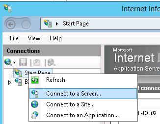 However, when you run the IIS Manager console in Windows 10, the Connect to a server item in the menu is missing.