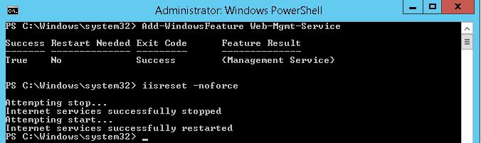 Install-WindowsFeature Web-Mgmt-Service