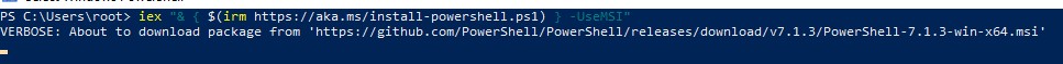 iex “& { $(irm https://aka.ms/install-powershell.ps1) } -UseMSI”