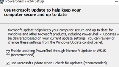 HKEY_LOCAL_MACHINE\SOFTWARE\Microsoft\PowerShellCorekey) - The second checkbox will allow you to receive updates for all of Microsoft’s software, not just Windows. If this option is disabled, you will not receive PowerShell updates from Microsoft Update, but you can receive them from your WSUS/SCCM (the registry parameter registeredwithAU=1 under