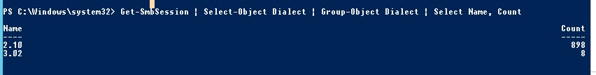Get-SmbSession | Select-Object -ExpandProperty Dialect | Sort-Object -Unique